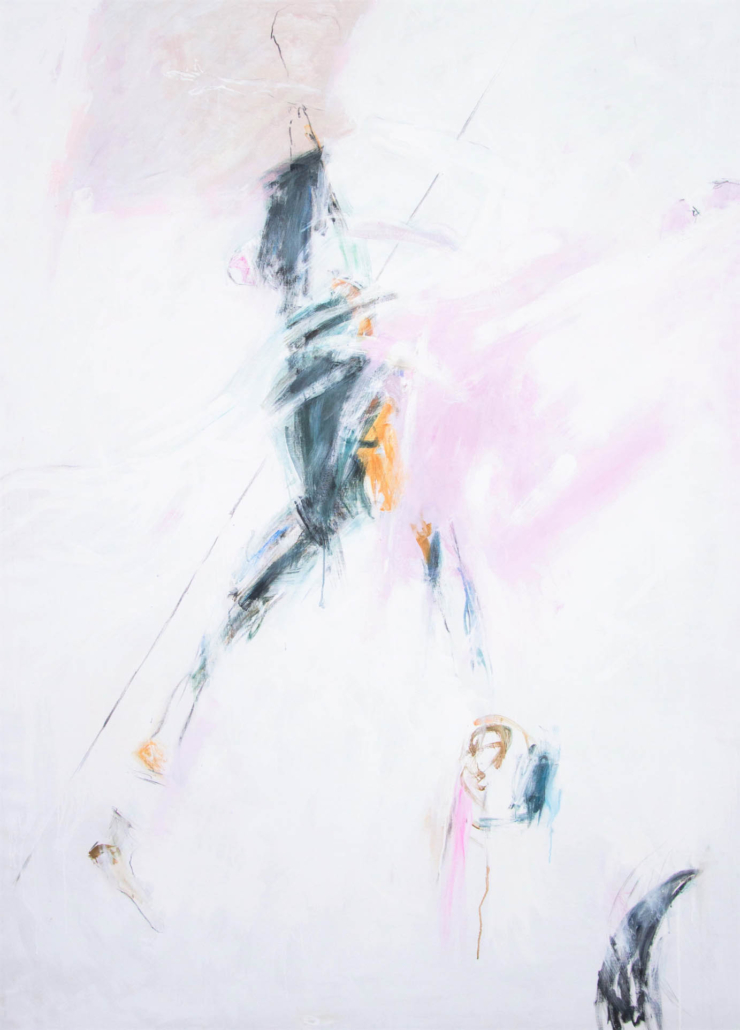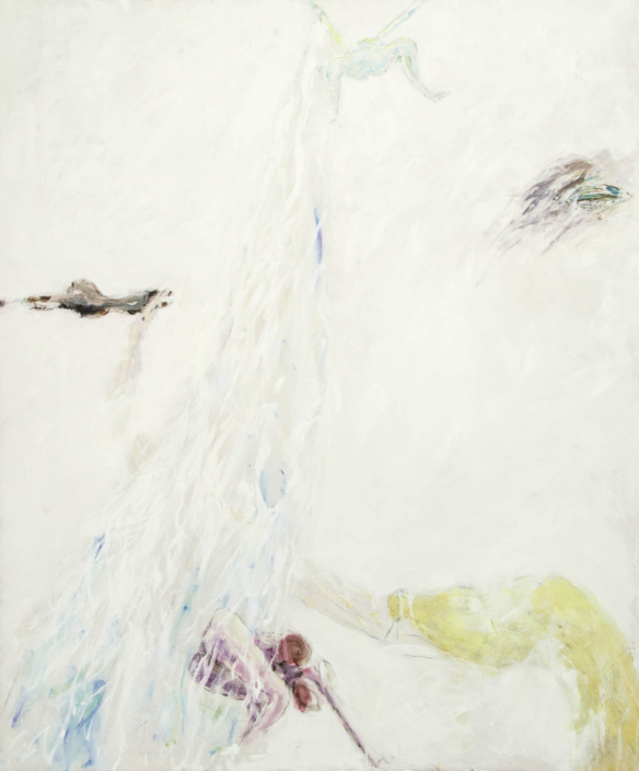 Since the 2000s, Raciti has developed a form of painting that confronts the problem of controversial resolutions, intensifying contradictions to infuse the image with dramatic as well as dreamlike force. Recent investigations include Crucifixions: Why, The Flowers of the Deep (where Proserpina, from the underworld, causes flowers to bloom on earth to communicate with her mother Demeter), and most recently One or Two Figures, where flowers become darts and unreachable embraces are evoked through their absence. In his latest works, the Sources, luminous and dark flows erupt from white backgrounds, enveloping figures and symbolic fragments in a powerful and definitive whirl.