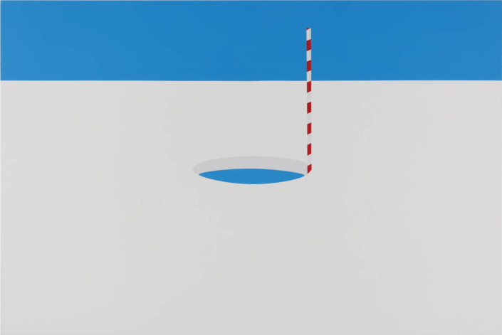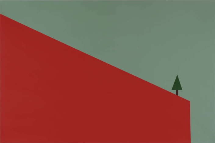 Silvia Negrini’s painting occupies a borderland where figurative language is reduced to its essence, brushing against the edge of abstraction. Her works depict geometrically structured environments, orderly landscapes, minimal interiors, and rigorous architectural forms, all completely devoid of human presence. Yet these are not anonymous or alienating places; rather, they are spaces rich with meaning, suspended in a silence charged with tension and potential. Her extraordinary formal synthesis, achieved through flat, uniform surfaces painted with enamels and solid colors, produces a purified image in which every line and spatial relationship follows a precise logic.