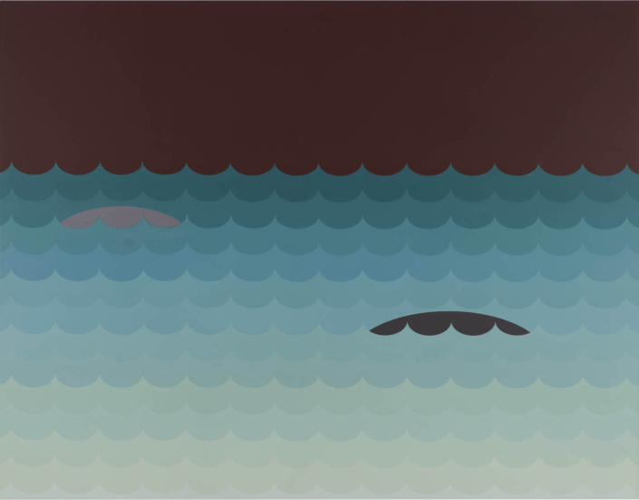 “There are certain imaginaries that seem impossible to translate into something visible, tangible,” writes Rossella Farinotti. “It takes real skill to do so. In her studio, Silvia Negrini, while describing certain details and moving from one painting to the next, points to a surface in dark tones. The piece is composed of two clearly defined sections, marked by her distinctive way of painting, favoring a limited chromatic range and the Greenbergian flatness typical of animated cartoons—but refined and densely layered. I ask her whether the lower portion represents the sea, albeit a dark-colored one, and whether the upper section somehow evokes a sky, a horizon. The artist explains that the image is drawn from The Odyssey. ‘The wine-dark sea,’ reads one of the epic’s translations. It truly is a sea the color of wine—how could I not have thought of that right away?”